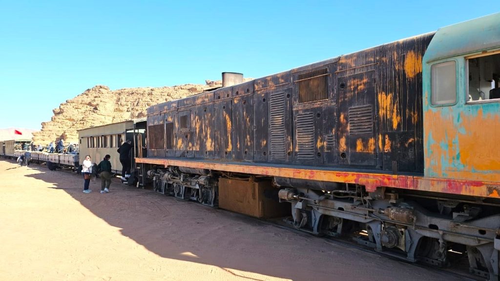 After checking in at the Wadi Rum Visitor Centre and having our Jordan Passes stamped , and having lunch, we had to take a detour back to an area just outside the Wadi Rum Visitor’s Centre, where the vintage train waited for passengers to board and have an unforgettable experience.