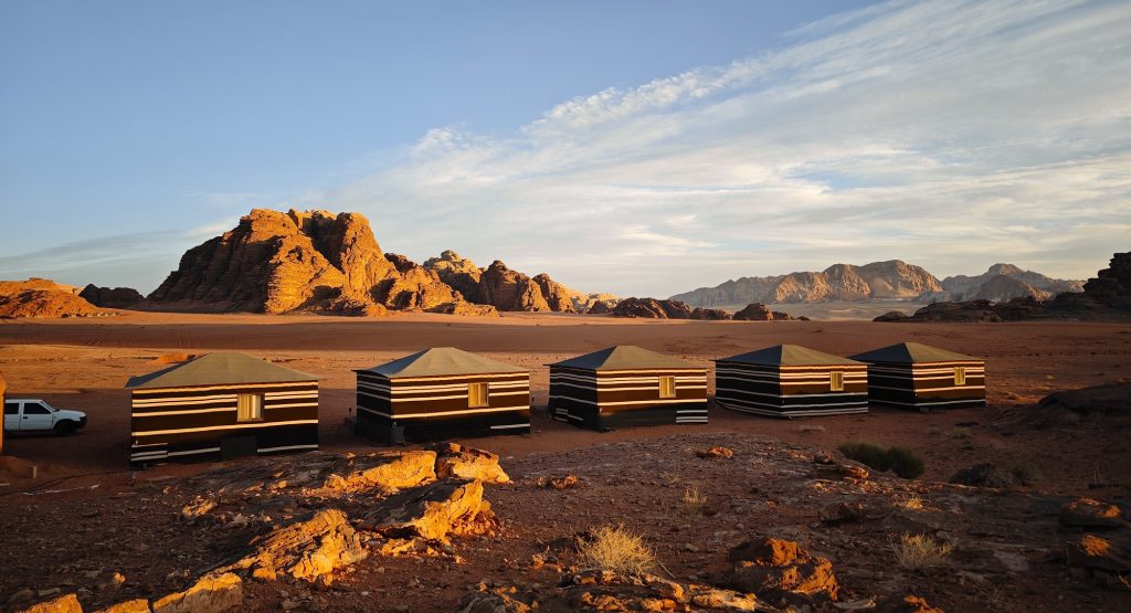 The Wadi Rum Village, set between Jebel Rum and Jebel Um Ashreen, is the only settlement within the protected area. It is home to around 2,000 mostly Bedouin residents and comprises a mix of traditional goat-hair tents and modern concrete but simple homes, reflecting the blend of heritage and contemporary living.