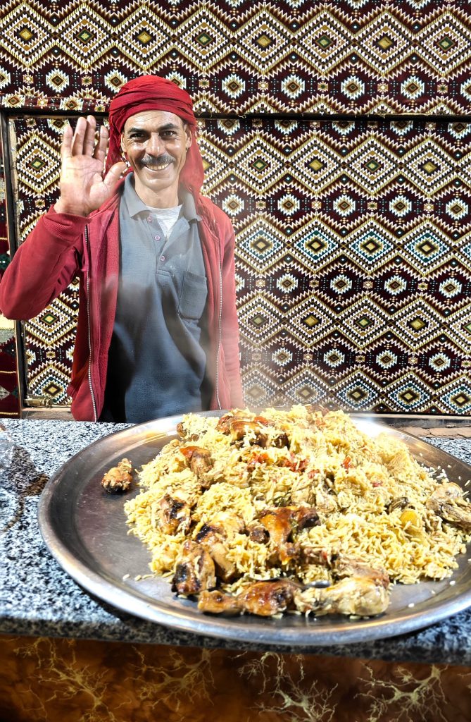 Every moment turned out to be unique. The next one was the Bedouin dinner. In Wadi Rum, meals are communal and deeply rooted in Bedouin tradition and there signature dish is the Zarb. Zarb is the desert’s version of BBQ — meat and vegetables cooked in a sand oven underground. The result? Smoky, tender, melting-off-the-bone perfection. I had expected to have a Zarb but luck didn’t favour us again. The camp had designated days for that.